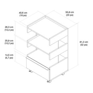 This simple and practical trolley fits perfectly into any work environment and adapts to your needs. Conceal your tools in the drawer, and use the 3 shelves to set up your accessories and supplies. It is equipped with 4 quiet casters, making it easy to move and handle.